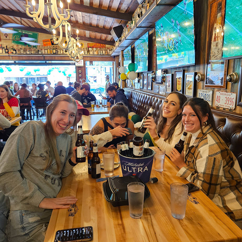From kickoff to the final whistle, wall-to-wall screens keep every snap in view while the crowd chants, cheers, and celebrates like it’s Bobby Dodd Stadium itself. With cold drinks flowing and fellow Jackets all around, every touchdown feels like a win back home in Atlanta.